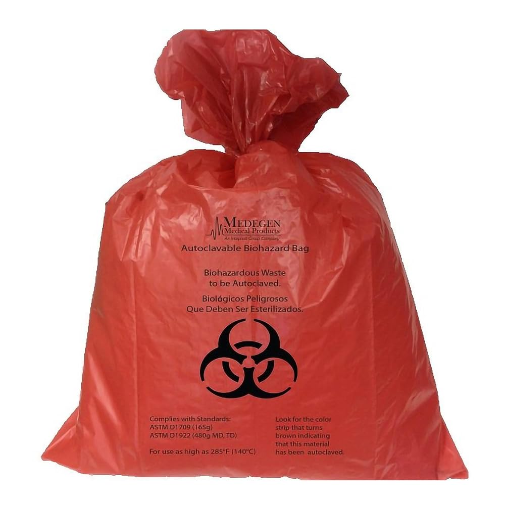 Medegen 45-75 كيس نفايات بيولوجية، ختم مسطح، لفة بدون قلب، أحمر/أسود، قياس 2.0 مل، سعة 60 جالون، عرض 55 بوصة، طول 60 بوصة، عبوة من 50