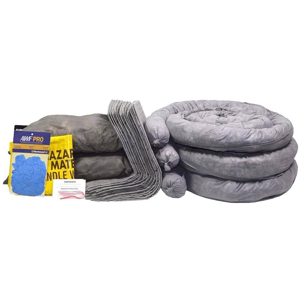 20 Gallon Universal Spill Kit Refill. The grey universal sorbents absorb oil, water, glycols, gasoline, diesel, hydraulic fluid and most chemicals. Refill includes: 15"x19" Heavy Duty Universal Absorbent Pads (40), 3"x 4' Universal Absorbent Socks (3), 18"x18" Universal Absorbent Pillows (2), Hazmat Bags (5), Zip Ties (5), Gloves (1).