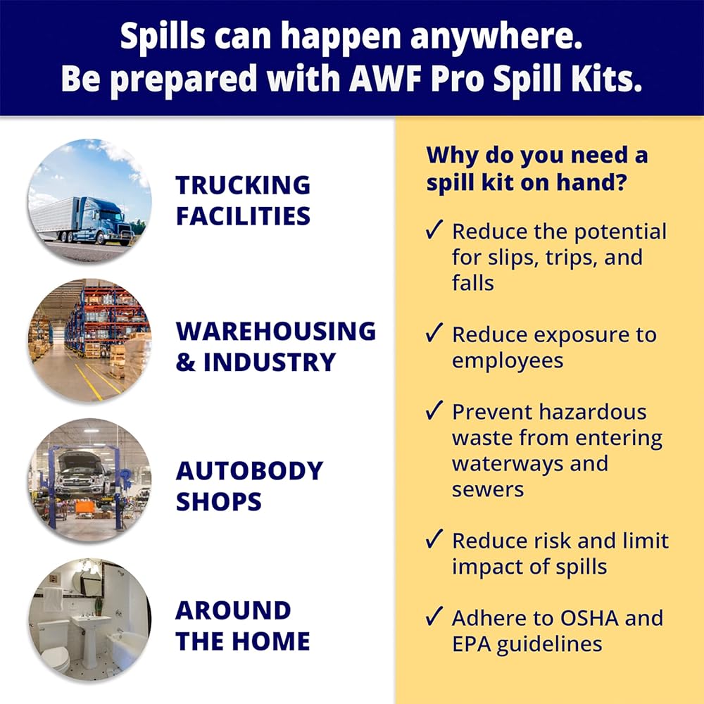 The grey universal sorbents absorb oil, water, glycols, gasoline, diesel, hydraulic fluid and most chemicals. Keep all of your spill containment needs in one convenient kit so you are never caught unprepared!