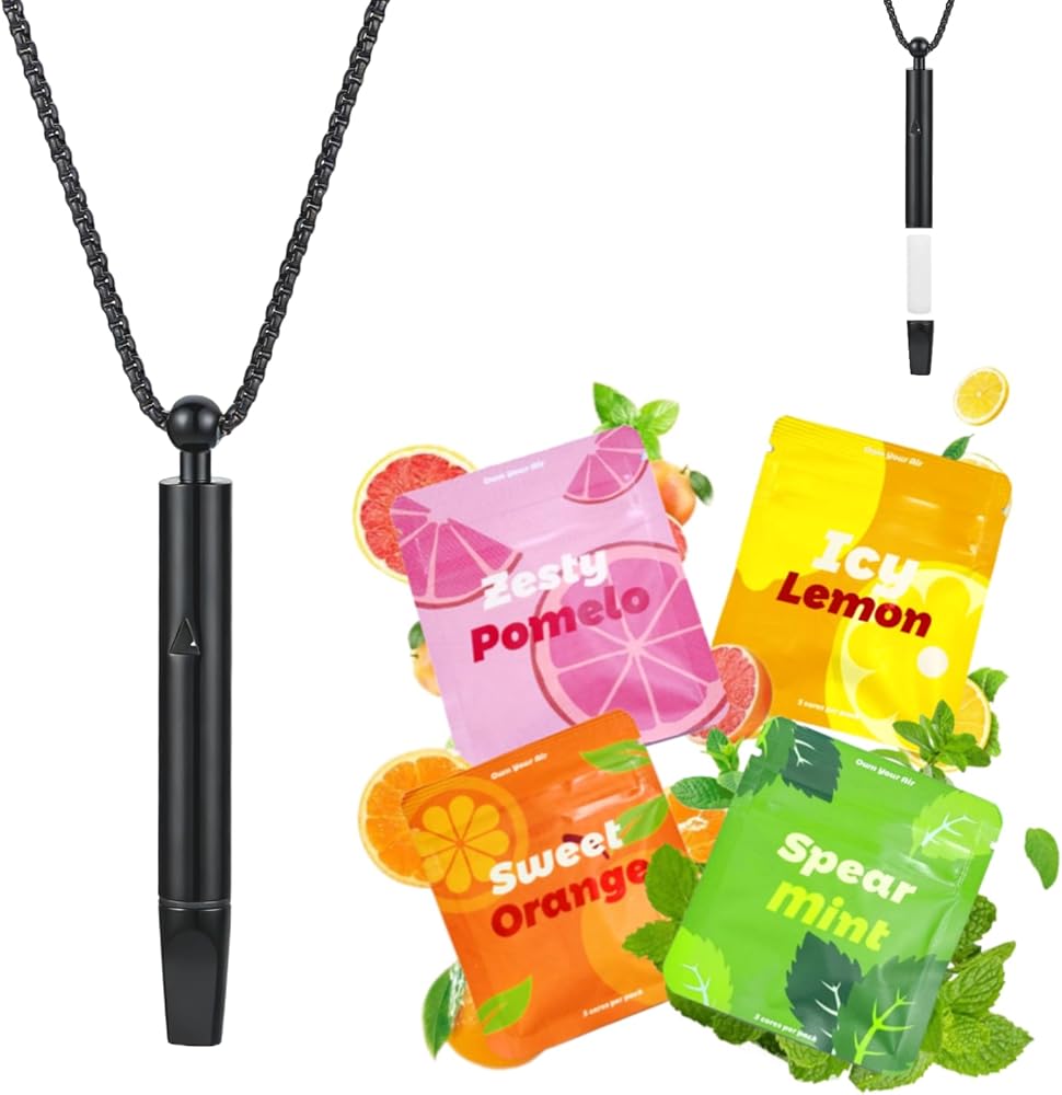 • Complete Starter Kit with Long-Lasting Value: Everything you need is included: 1 breathing necklace and 4 flavor packs (each containing 3 cores, 12 cores total). Enjoy extended use and variety, making it a sustainable and cost-effective companion for your wellness journey