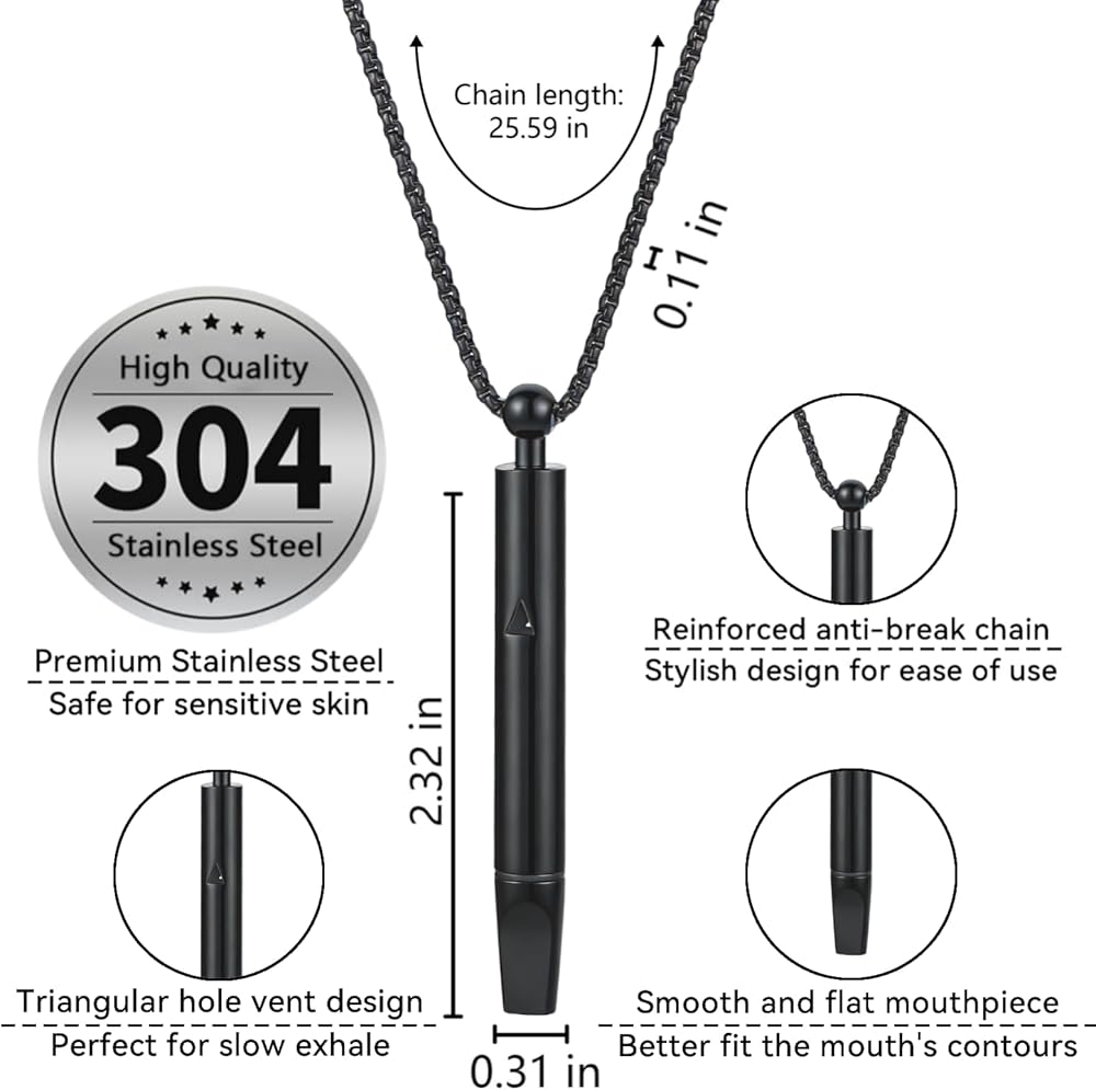 • Fashion-Forward Design with Premium Materials:Crafted entirely from hypoallergenic 304 food-grade stainless steel, this necklace is gentle on the skin and designed to be worn daily as a sleek, modern accessory. When gently exhaled into, air flows out through subtle triangular vents—blending discreet functionality with minimalist style