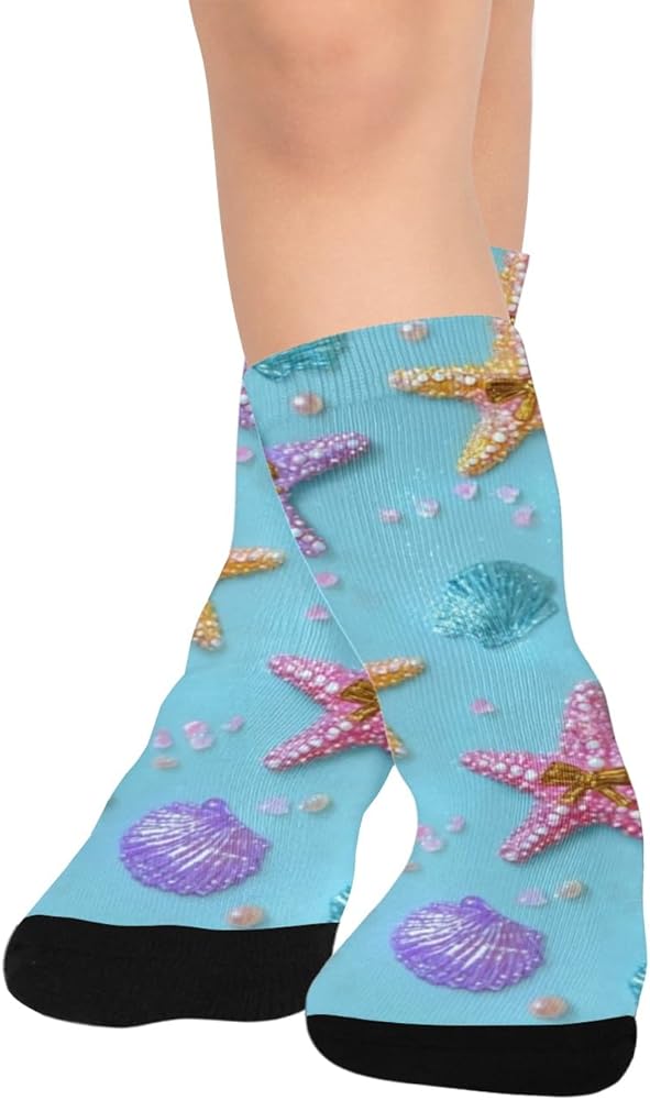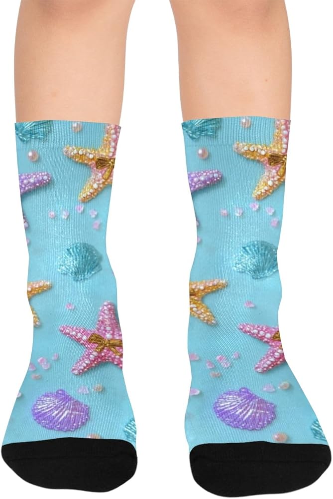 جوارب التنزه سيرًا على الأقدام بطباعة نجم البحر الباستيل - جوارب شتوية حرارية سميكة دافئة للأطفال الصغار للأولاد والبنات للمدرسة، والارتداء اليومي والأنشطة الخارجية