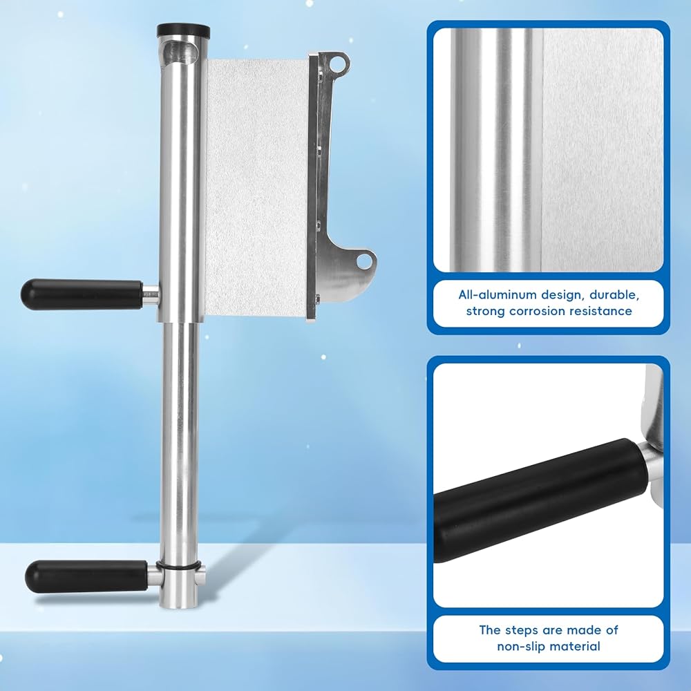 - سلم القارب مصنوع بالكامل من الألومنيوم، متين، مقاوم للتآكل؛ تستخدم الخطوتين مواد غير قابلة للانزلاق لزيادة السلامة