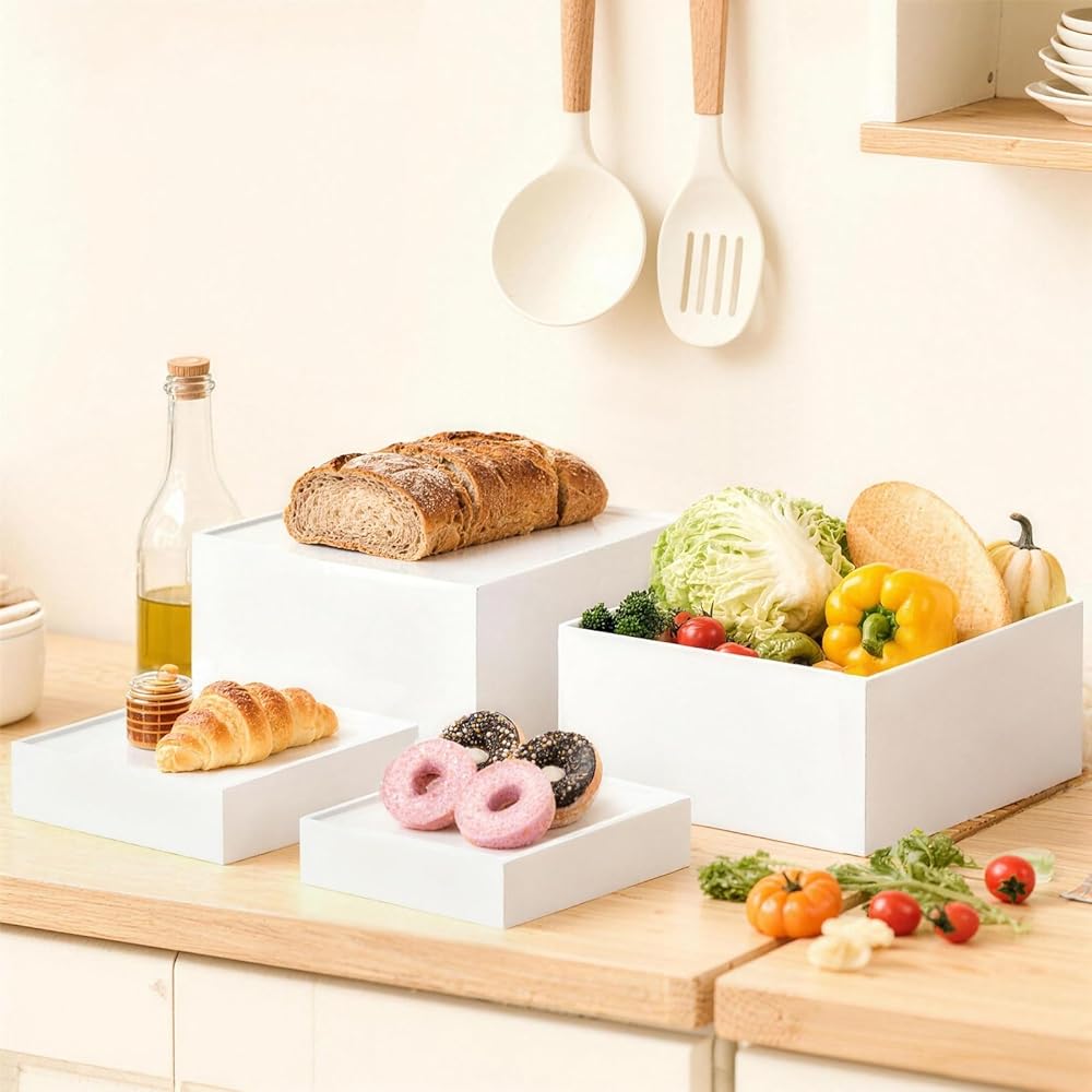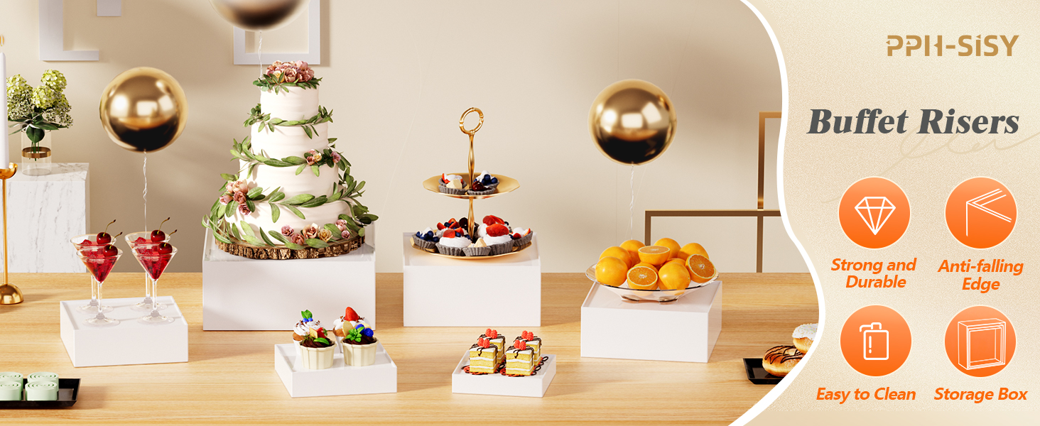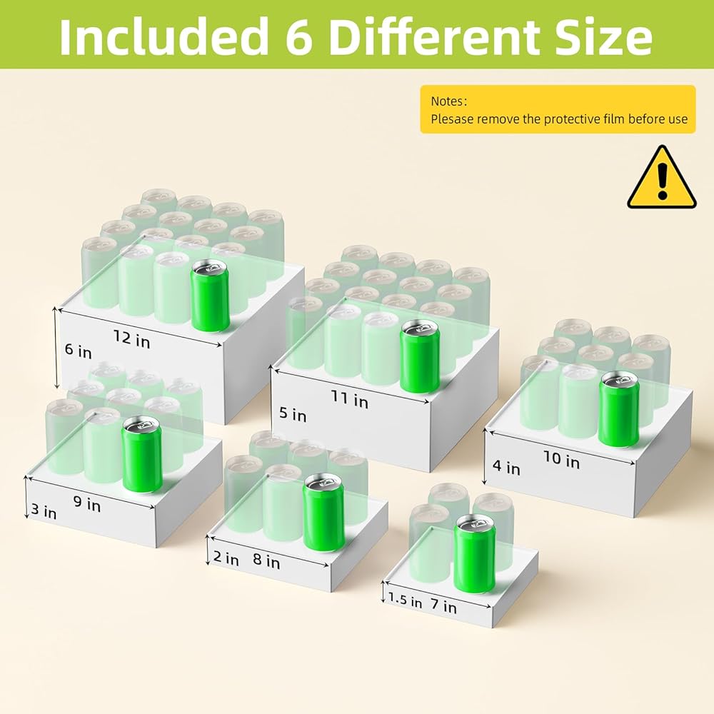 مجموعة رافعات البوفيه كبيرة الحجم - تتضمن مجموعة عرض الحلوى الأكريليك هذه 6 رافعات بأبعاد متنوعة (12x12x6 بوصة، 11x11x5 بوصة، 10x10x4 بوصة، 9x9x3 بوصة، 8x8x2 بوصة، 7x7x1.5 بوصة)، تغطي نطاق مقاس 7 بوصة إلى 12 بوصة. يمكّنك التصميم ذو السعة الكبيرة من عرض وتخزين المزيد من العناصر، مما يلبي جميع احتياجات العرض المتنوعة الخاصة بك. ملاحظة: يرجى تمزيق الطبقة الواقية قبل الاستخدام.