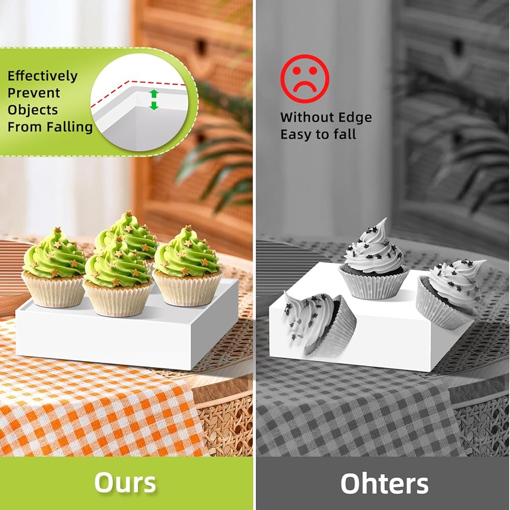 الناهضات ذات الحافة المرتفعة - مجهزة بحواف مرتفعة على السطح العلوي والتي تحافظ على الكعك أو الكب كيك أو الوجبات الخفيفة أو الزخارف في مكانها، مما يمنع الطعام من السقوط والانسكاب. الجوانب الأربعة ذات تصميم مخروطي دائري لمنع الخدوش على يديك.