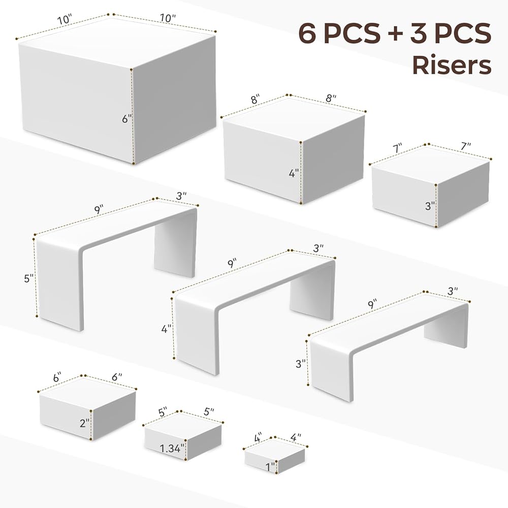 🔄 【حوامل عرض متعددة الوظائف】 اعرض أغراضك بأناقة مع رافعات العرض الأكريليك متعددة الاستخدامات هذه. سواء كنت تعرض الطعام أو المجوهرات أو العطور أو المقتنيات، فإن منصات العرض هذه تتكيف بشكل مثالي مع المناسبات المختلفة. كما أنها بمثابة دعامة صور ممتازة أو هدايا مدروسة.