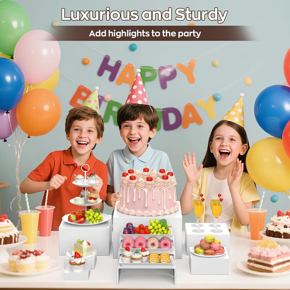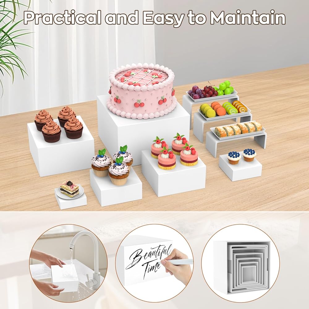 🏗️ 【أساسيات الحفلات عالية الجودة وعملية】 تعمل رافعات وحوامل البوفيه الأنيقة هذه على تعزيز رافعات الطعام الخاصة بك بعمق بصري وأجواء راقية. إن حاملات العرض MUNNAR المصنوعة من الأكريليك الأبيض القوي ليست أنيقة فحسب، ولكنها أيضًا قوية بما يكفي لحمل الأطباق أو الأواني الزجاجية أو الزخارف بشكل آمن.