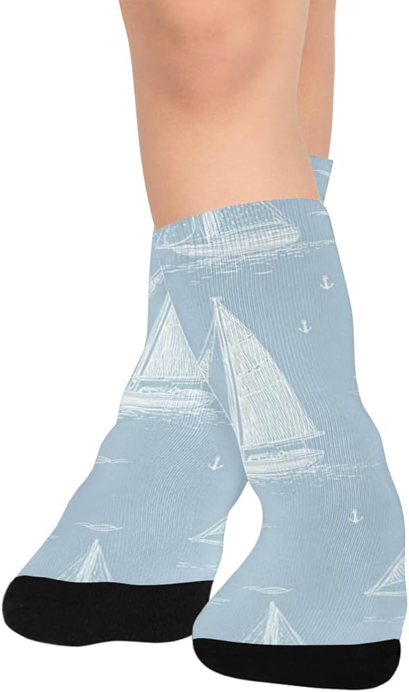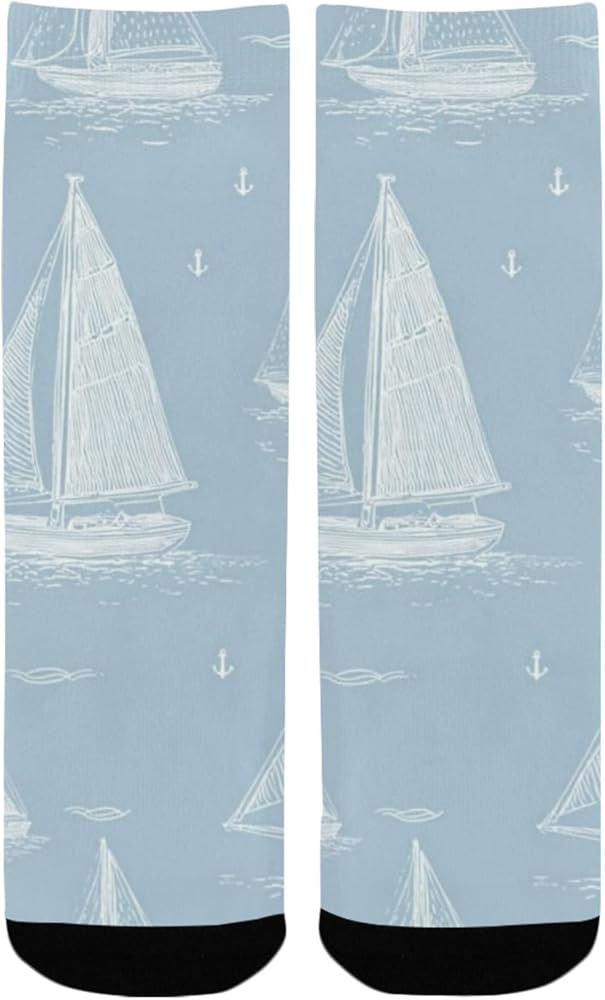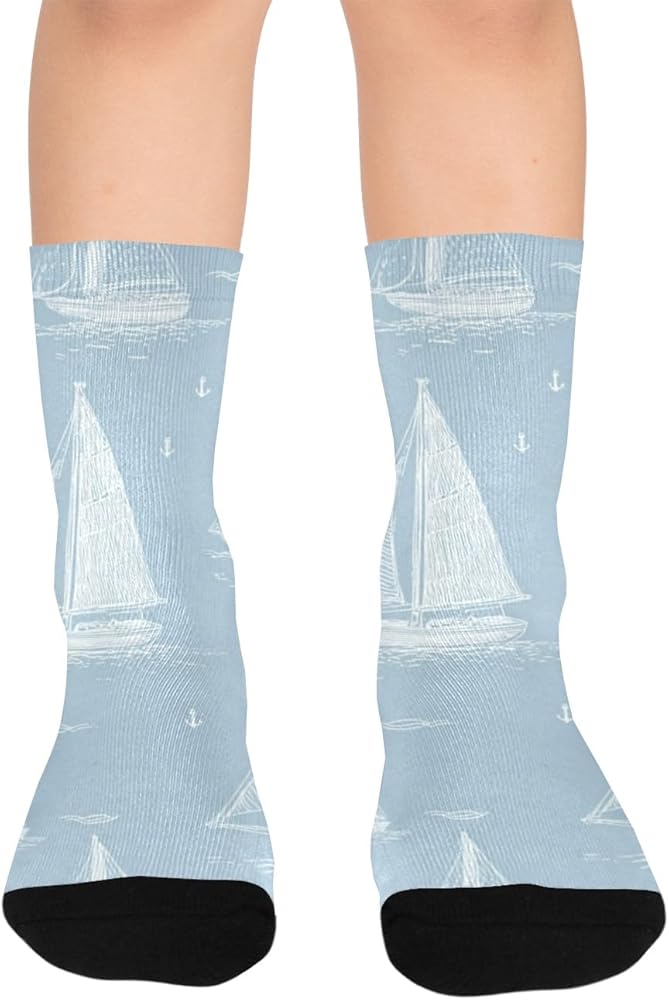 جوارب المشي لمسافات طويلة على شكل قارب شراعي بحري - جوارب شتوية حرارية سميكة دافئة للأولاد والبنات الصغار للمدرسة، والارتداء اليومي والأنشطة الخارجية