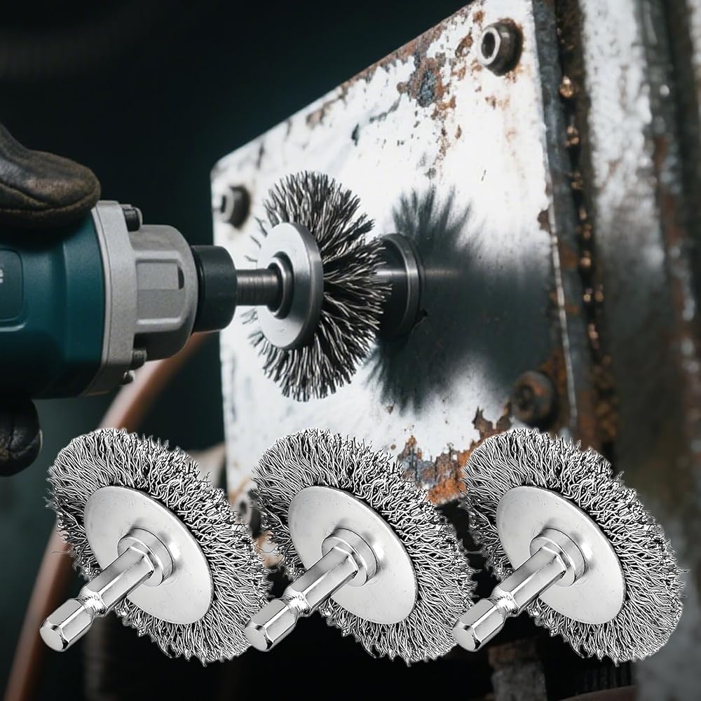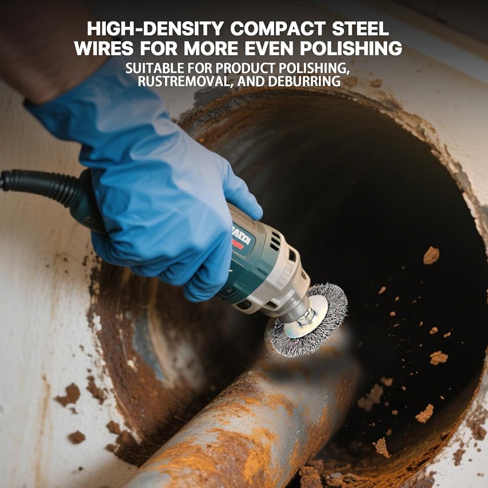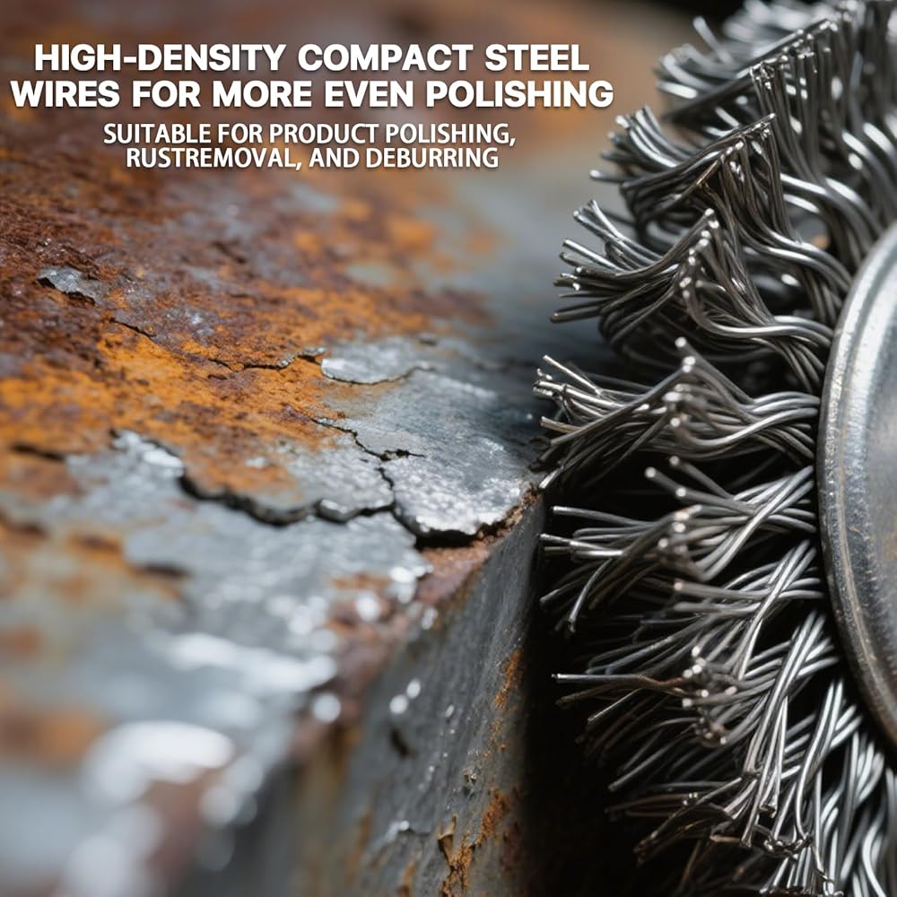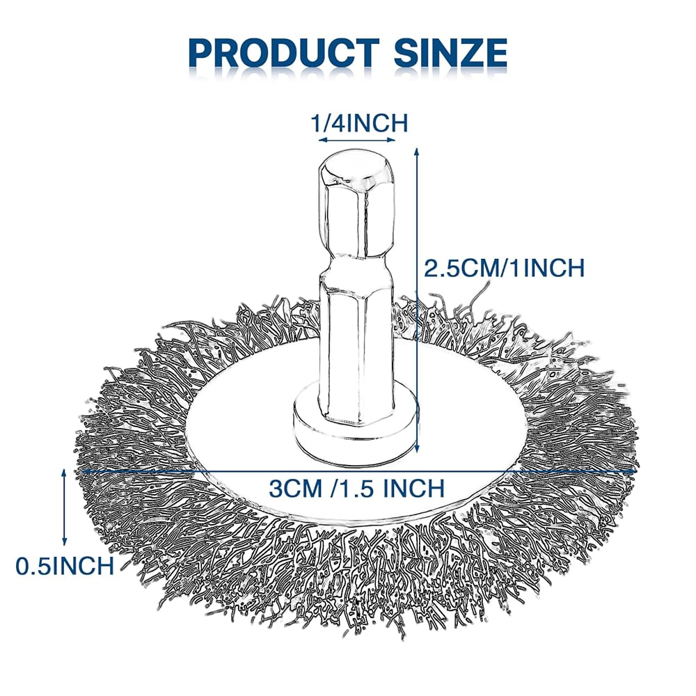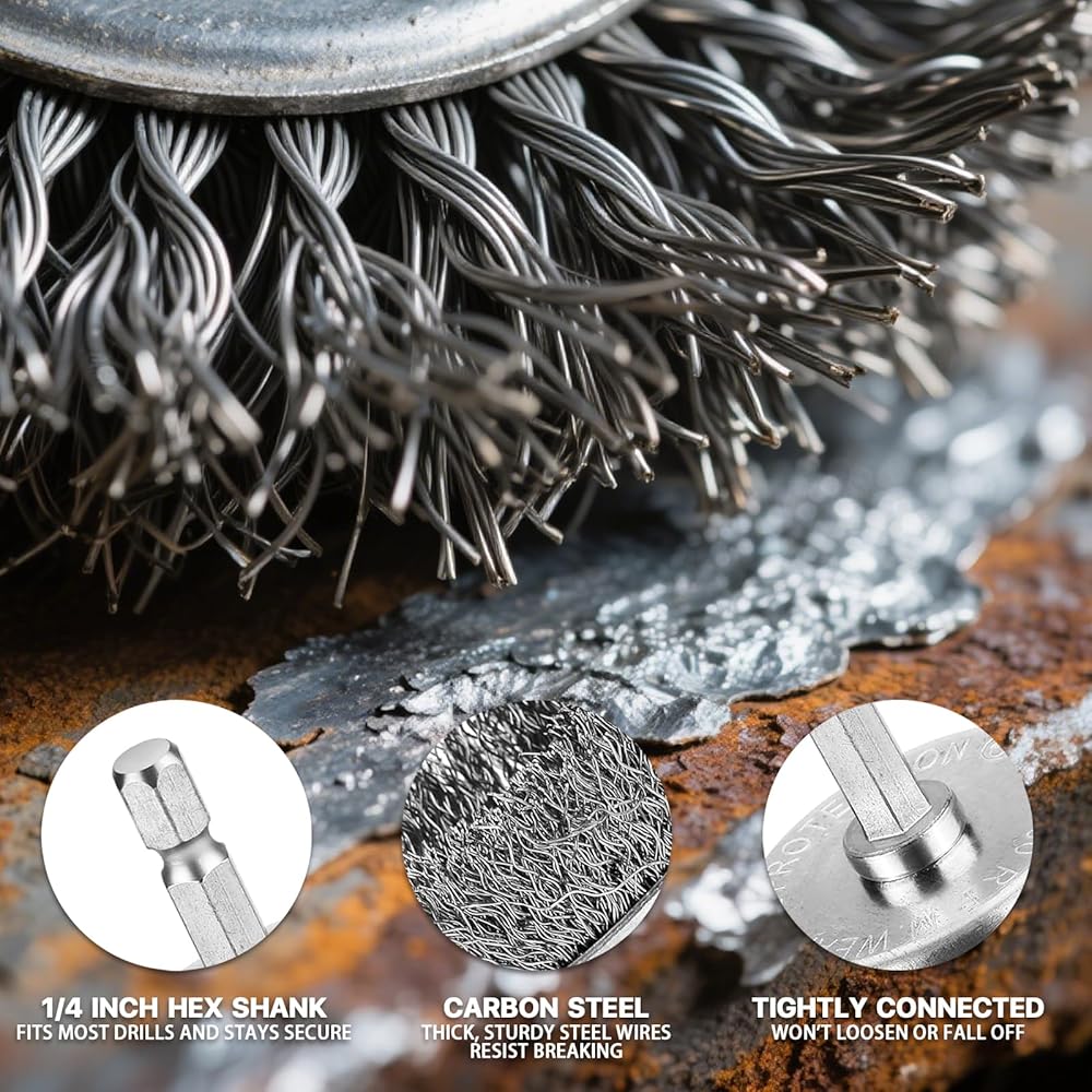 【Stronger Rust Removal Function】 The metal carbon steel crimped coarse drill wire brush can withstand the high speed of the 4500RMP. The wire wheel brush set removes rust, paint, dust and burrs from surfaces such as metals and wood, and can also be used to level weld spatter.