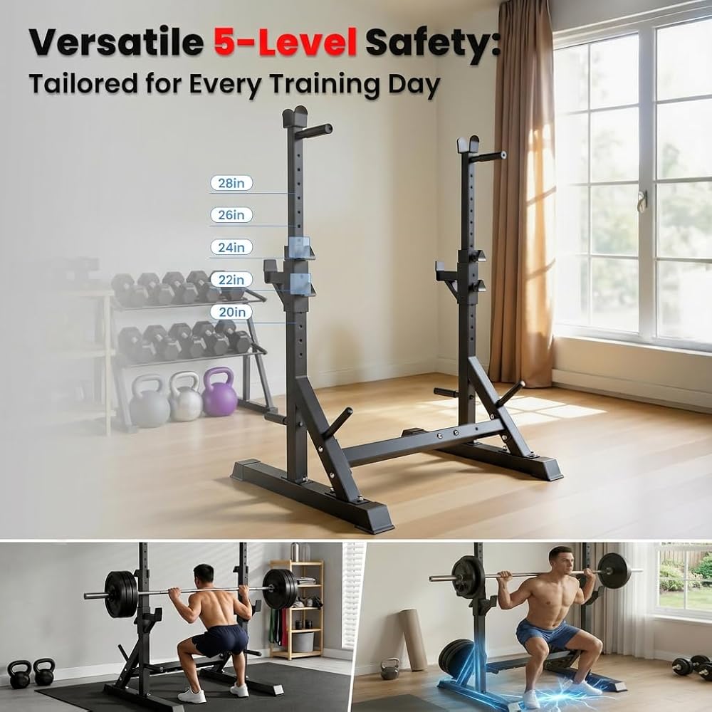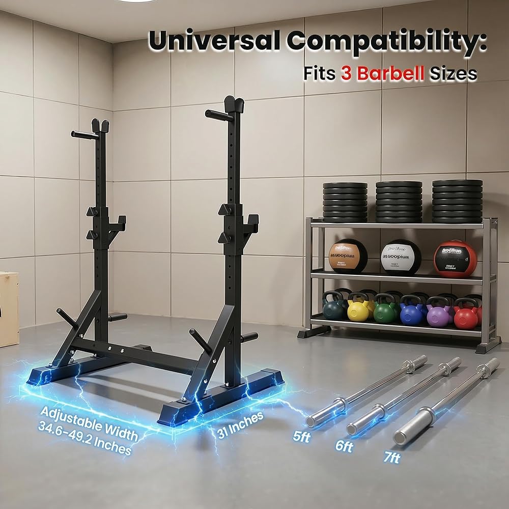 تعديل العرض التلسكوبي متعدد الاستخدامات. مصمم ليتوافق مع صالة الألعاب الرياضية المنزلية، ويمكن تعديل عرض الإطار من 34.6 إلى 49 بوصة، ويناسب قضبان الحديد القياسية بطول 6 أقدام و7 أقدام و8 أقدام بدقة. تسمح هذه البنية التحتية القابلة للتعديل بالتكامل السلس مع إعدادات التمارين المختلفة وتكوينات تدريب القرفصاء لتلبية احتياجاتك الخاصة من المعدات.
