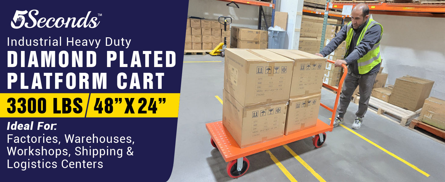 شاحنة ذات منصة ثقيلة 3300 رطل: تم تصميم عربة الدفع هذه للتعامل مع الأحمال الثقيلة بسعة قصوى تصل إلى 3300 رطل، مما يجعلها مثالية لنقل العناصر الكبيرة والضخمة في المستودعات أو المرائب أو متاجر البيع بالتجزئة أو البيئات الصناعية.