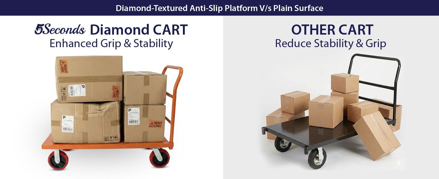 هيكل متين: تتميز العربة بمنصة فولاذية كبيرة بقياس 48 بوصة × 27 بوصة. يضمن هذا البناء القوي متانة طويلة الأمد، مما يسمح لك بنقل العناصر بثقة وثبات.