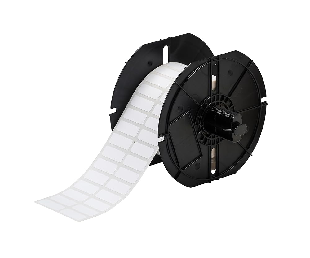 - Matte white polyester material has a permanent acrylic adhesive and is thermal transfer printable