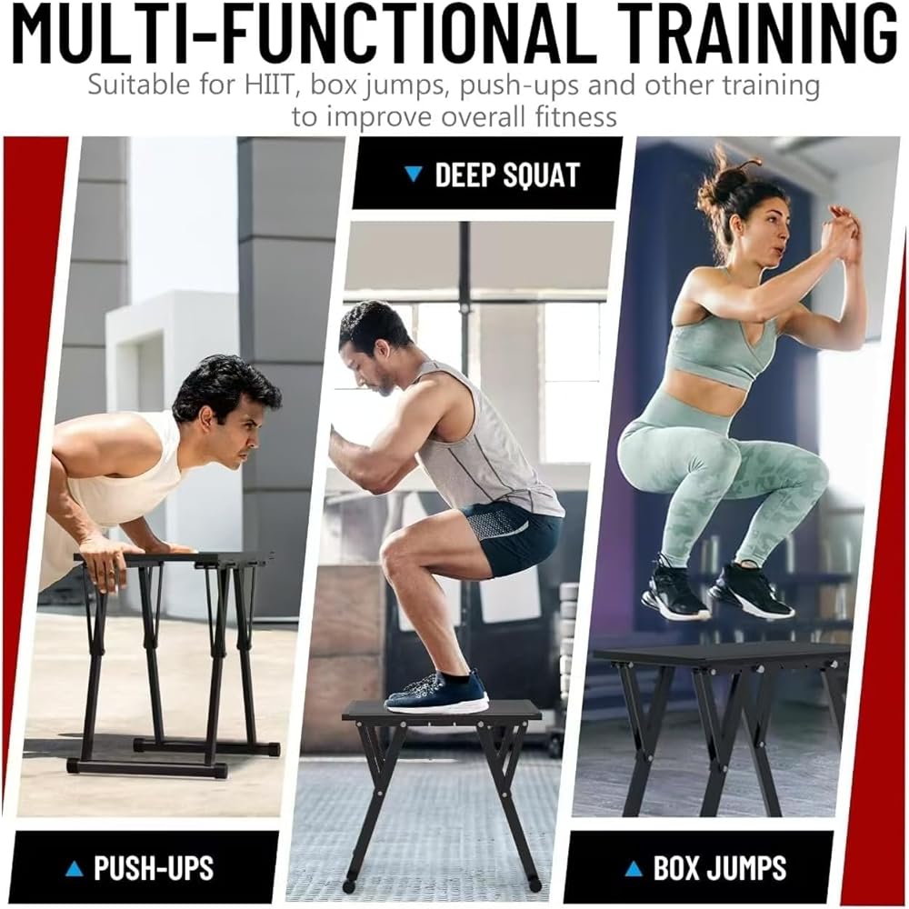 صندوق Plyometric فولاذي قابل للتعديل من GanFindX، ستة إعدادات للارتفاع 30.48 سم - 66.04 سم من الفولاذ Plyo Box Home Gym Jump Trainer للياقة البدنية وتمارين الرشاقة والقدرة على التحمل وتدريبات القوة