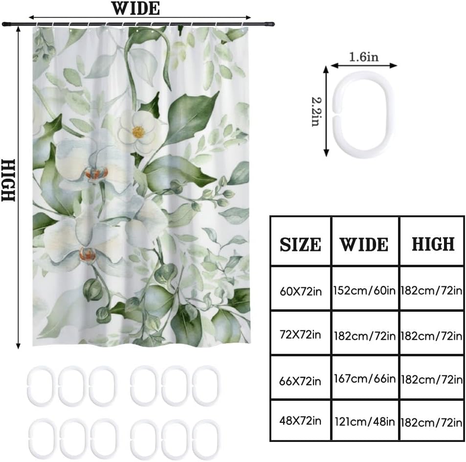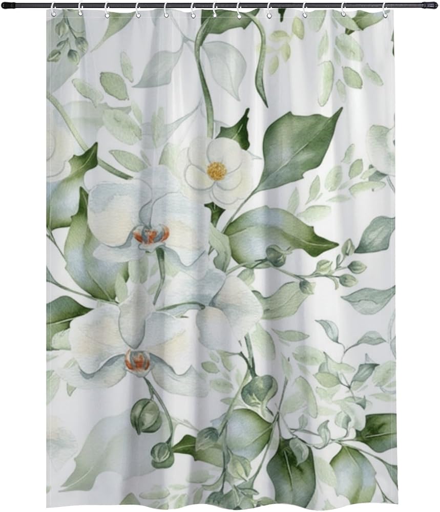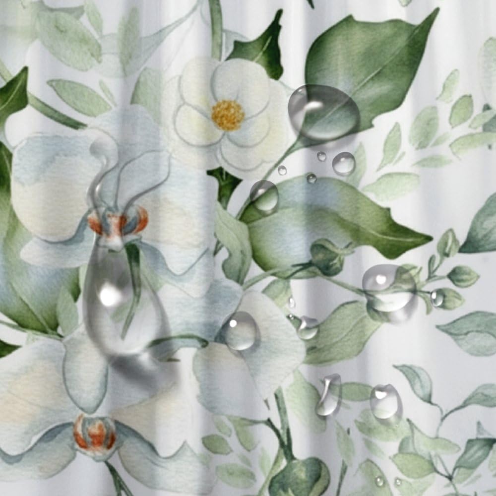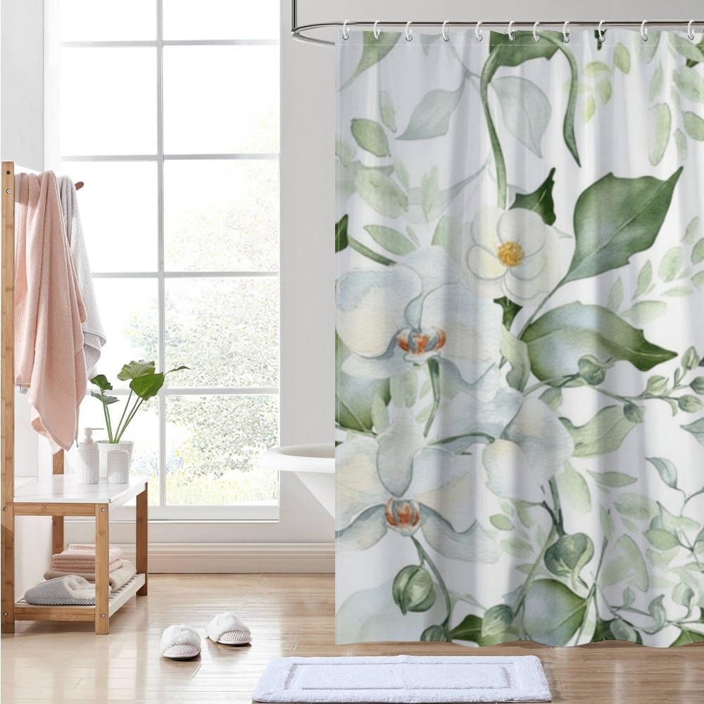 الأوركيد كاميليا عزر دش كشك الستار مع السنانير، الصيف ستارة دش الحد الأدنى للماء، قابل للغسل النسيج عطلة ستائر أنيقة للحمام لعطلة الديكور 72 × 72 في