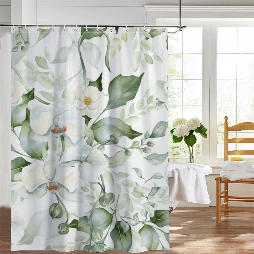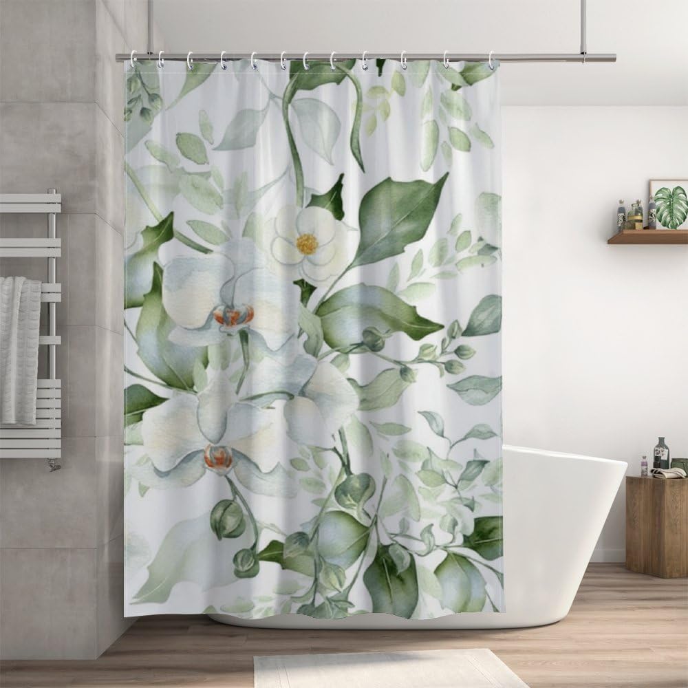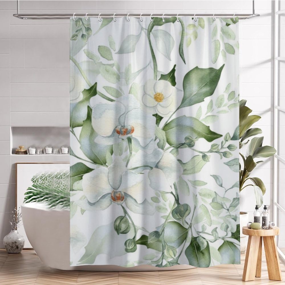 الأوركيد كاميليا عزر دش كشك الستار مع السنانير، الصيف ستارة دش الحد الأدنى للماء، قابل للغسل النسيج عطلة ستائر أنيقة للحمام لعطلة الديكور 72 × 72 في