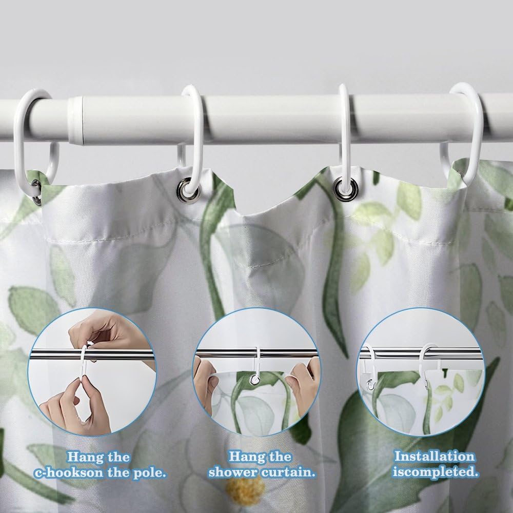 • 【East To Install】Equipped with 12 rust-proof metal grommets and thickened C-shaped curtain hooks, this cottage core curtains features grommet holes that fit all types of rings or hooks for easy replacement and cleaning. The metal grommets prevent hole tearing and extend the curtain's service life. Installation is quick and hassle-free—simply hang the grommets onto your shower rod, making farmhouse shower curtains for bathroom suitable for various bathroom hanging needs.