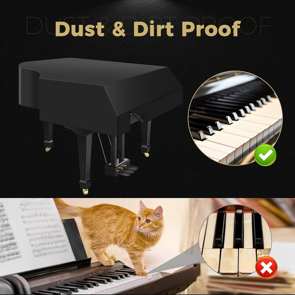 • 【غطاء بيانو كبير احترافي للأطفال】غطاء بيانو كبير ممتاز مقاوم للماء مصنوع من قماش أكسفورد 600D عالي التحمل مع بطانة من الصوف الفاخر. مثالي كغطاء بيانو كبير وغطاء بيانو كبير للأطفال (يناسب مقاس 58 بوصة - 62 بوصة)