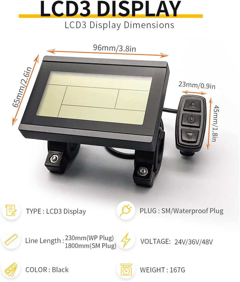 [Intelligent adjustment] KT LCD3 is a smart display, compatible with 24V/36V/48V/52V voltage, can automatically identify your lithium battery and adjust itself.There is a USB connector on the back of the monitor to charge your mobile device