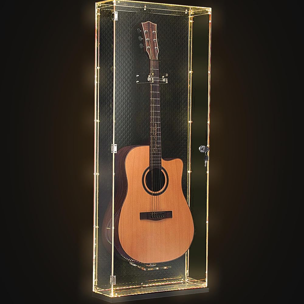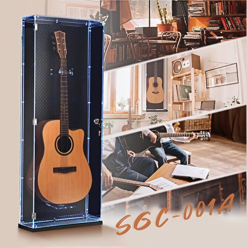 حافظة عرض جيتار صوتي من الأكريليك Starfavor، مثبتة على الحائط، خزانة تخزين جيتار محمية من الأشعة فوق البنفسجية قابلة للقفل مع أضواء LED 7 ألوان، حافظة صلبة للتابوت للجيتار الصوتي SGC-001A