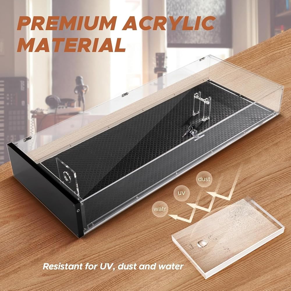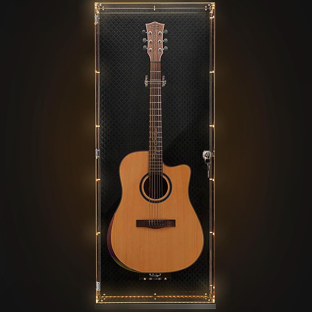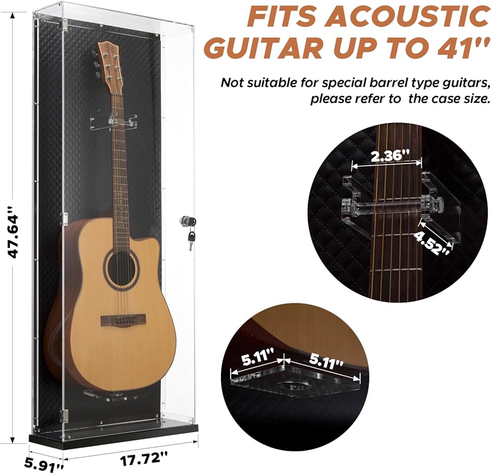 حقيبة جيتار صوتي: بأبعاد داخلية تبلغ 47.64 بوصة × 17.72 بوصة × 5.91 بوصة، يمكن لحقيبة العرض الشفافة هذه تخزين جيتار خشبي يصل طوله إلى 41 بوصة، مما يجعلها مثالية لعرض الجيتارات المميزة القيمة، أو الجيتارات العتيقة، أو الملحقات مثل الأقراص المضغوطة وبطاقات التوقيع