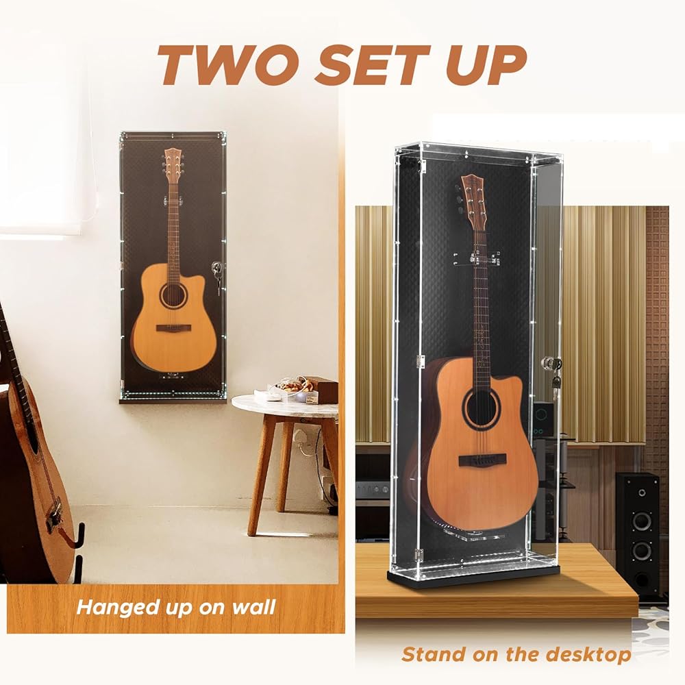 مادة فاخرة: حافظة عرض الجيتار SGC-001A مصنوعة من أكريليك عالي الجودة وفائق الوضوح ومتين ومقاوم للحرارة والأشعة فوق البنفسجية، مما يحمي جيتارك من البهتان والغبار. توفر حقيبة التثبيت على الحائط للجيتار الصوتي أيضًا مساحة إبداعية يمكنك صنعها بنفسك، مما يجعلها قطعة ديكور أنيقة لمنزلك