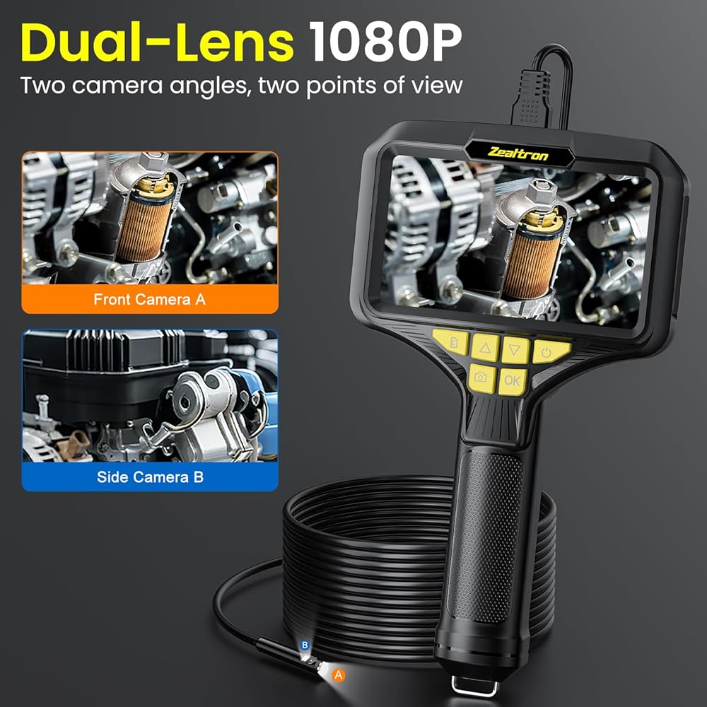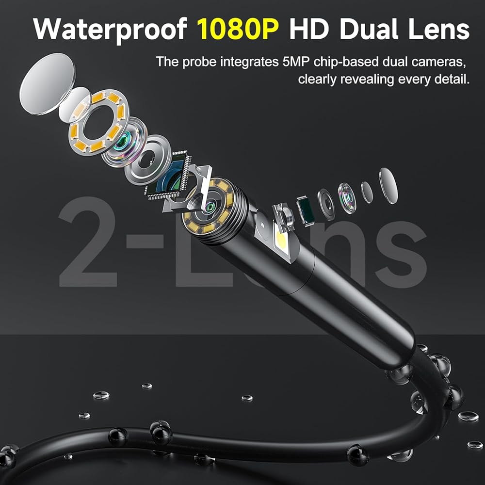 • 【نظام كاميرا مزدوج عالي الدقة متطور】تعظيم التنوع! تتميز كاميرا الفحص هذه بكاميرات مزدوجة مدمجة بدقة 1080 بكسل على مسبار رفيع مقاس 8 مم. تتميز الكاميرا الأمامية بـ 8 مصابيح LED قابلة للتعديل للمشاهد الأمامية، بينما تحتوي الكاميرا الجانبية على مصباح LED مخصص، مما يسمح بمفاتيح منظور فورية لفحص الأنابيب أو الأسطوانات أو الآلات الداخلية بدقة.