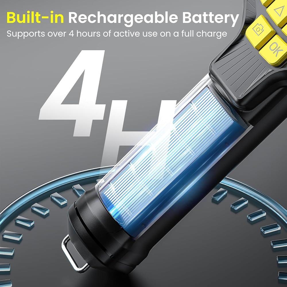 • 【عمر بطارية ممتد وتوصيل وتشغيل بسيط】تعامل مع المهام الأطول باستخدام البطارية المدمجة القابلة لإعادة الشحن، مما يوفر أكثر من 4 ساعات من التشغيل المستمر. ابدأ على الفور - لا حاجة إلى شبكة WiFi أو تطبيقات أو برامج تشغيل معقدة. يضمن التصميم المريح الراحة أثناء الاستخدام الممتد. يشتمل على ملحقات سبائك ملولبة آمنة (خطاف ومغناطيس) لتعزيز مهام الاسترجاع والفحص.