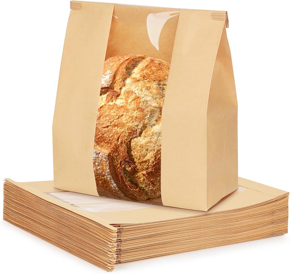 مادة مقاومة للتمزق: مصنوعة من ورق مقاوم للدهون، وقوية بما يكفي لتحمل ما يصل إلى 1.5 رطل من السلع المخبوزة. أكياس الخبز ذات النافذة مصنوعة بشكل جيد ولن تتفكك عند الدرزات.