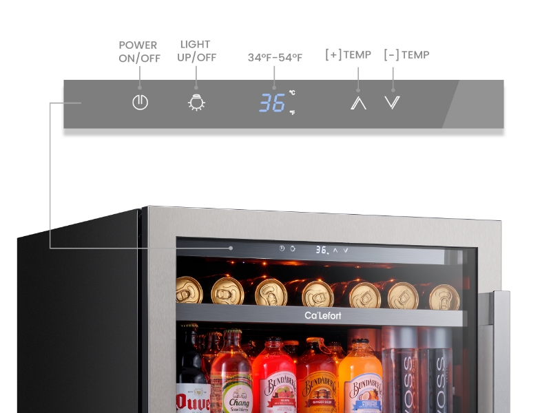 تقنية التبريد المتقدمة: يتميز مبرد المشروبات هذا بنظام تبريد ضاغط ومروحة لأداء مستقر، مع تحكم دقيق في درجة الحرارة من 34 درجة فهرنهايت إلى 54 درجة فهرنهايت ودقة 1 درجة فهرنهايت. مثالية للبيرة أو الصودا أو الماء الفوار أو النبيذ. تعمل إضاءة LED المدمجة باللون الأبيض والأزرق والعنبر على تحسين الرؤية وإنشاء شاشة عرض نظيفة وحديثة.