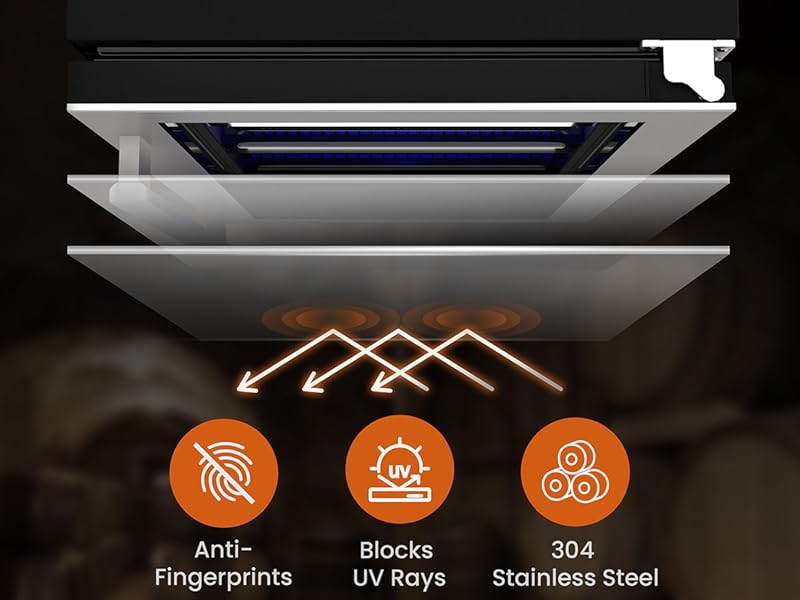 تصميم أنيق محمي على شكل حرف U: تتميز ثلاجة المشروبات هذه بإطار متكامل من الفولاذ المقاوم للصدأ بمظهر عصري ونظيف يتناسب بسهولة مع أي مساحة. يساعد الباب الزجاجي ذو الطبقة المزدوجة المقاوم للأشعة فوق البنفسجية على حجب أشعة الشمس والحفاظ على التبريد المستقر، مما يحمي نكهة المشروبات بمرور الوقت. المقبض المنحني الناعم يجعل الفتح والإغلاق سهلاً مع إضافة لمسة نهائية مصقولة.