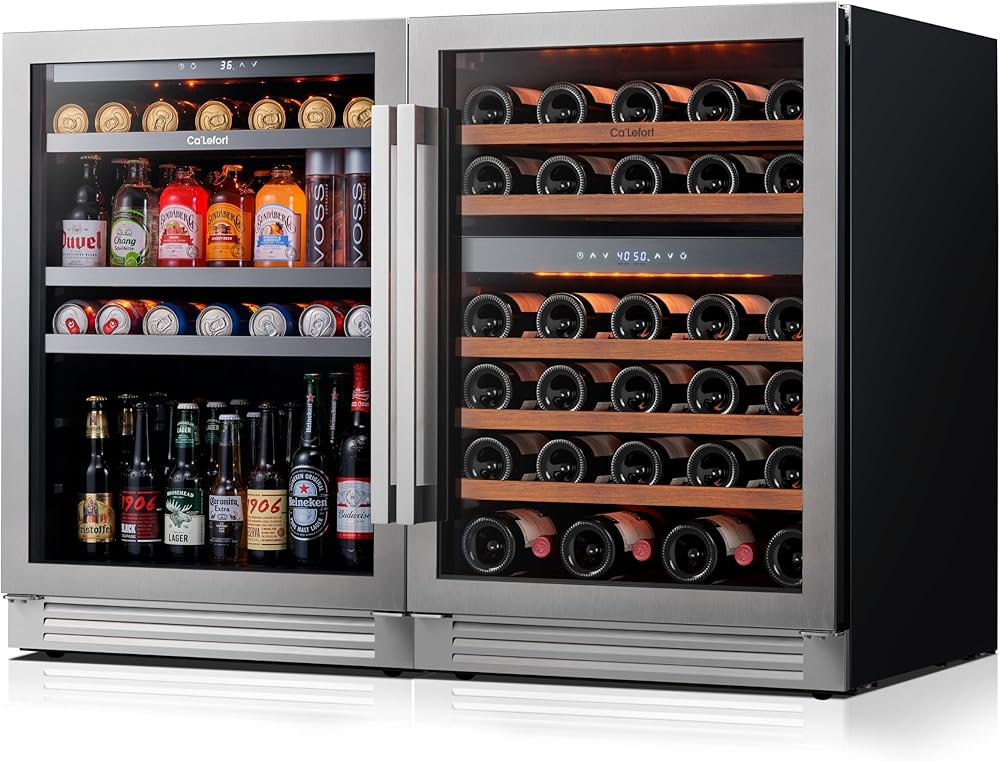 تركيب متعدد الاستخدامات مع باب ثابت بمفصلات يسرى: يتميز مبرد المشروبات مقاس 24 بوصة بتصميم باب ثابت بمفصلات يسرى لا يمكن عكسه. يدعم تصميم فتحة التهوية الأمامية التثبيت المدمج والقائم بذاته، مما يجعله مناسبًا للمطابخ أو الحانات المنزلية أو مناطق الترفيه. الحجم: 23.4 بوصة عمق × 23.8 بوصة عرض × 33.8 بوصة ارتفاع