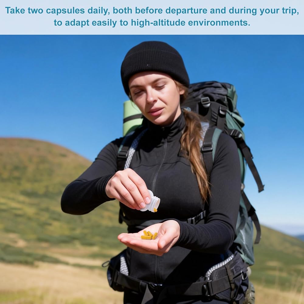 Each bottle contains 50 servings, making it convenient to carry and ideal for pre-trip preparation and during your journey. Simply take two capsules daily to help your body adapt to the thin air. The product is small and lightweight, easily fitting into a travel bag, making it ideal for skiers, hikers, mountaineers, and those venturing to high-altitude regions.