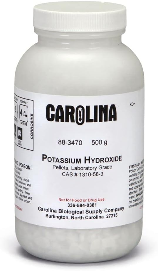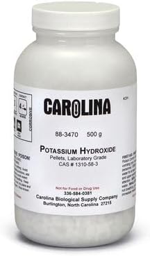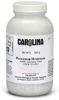 Synonym: Caustic potash Formula: KOH Formula Wt.: 56.11 CAS: 1310-58-3 Storage Code: White - corrosive; separate acids from bases; separate oxidizer acids from organic acids DOT Class: Corrosive Potassium Hydroxide, Pellets, Laboratory Grade, 500 g Laboratory Grade – Intermediate purity. Suitable for educational laboratories. Use for qualitative analysis, not quantitative analysis. This product is specially made for use in science education laboratories; no certificate of analysis is available.