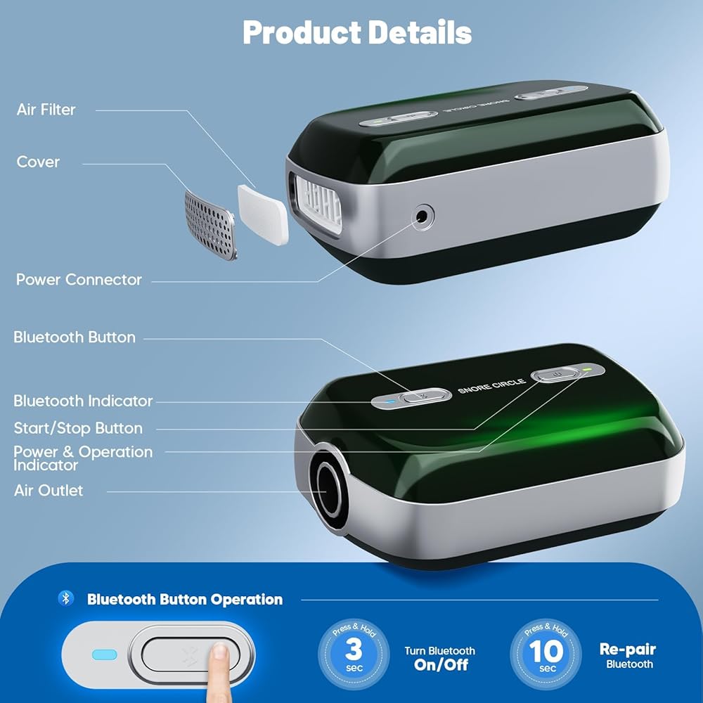 Smart Detection with Gentle Feedback Built-in smart sensing technology detects snoring patterns and provides mild vibration to encourage natural adjustment, helping support more restful sleep without disruption.