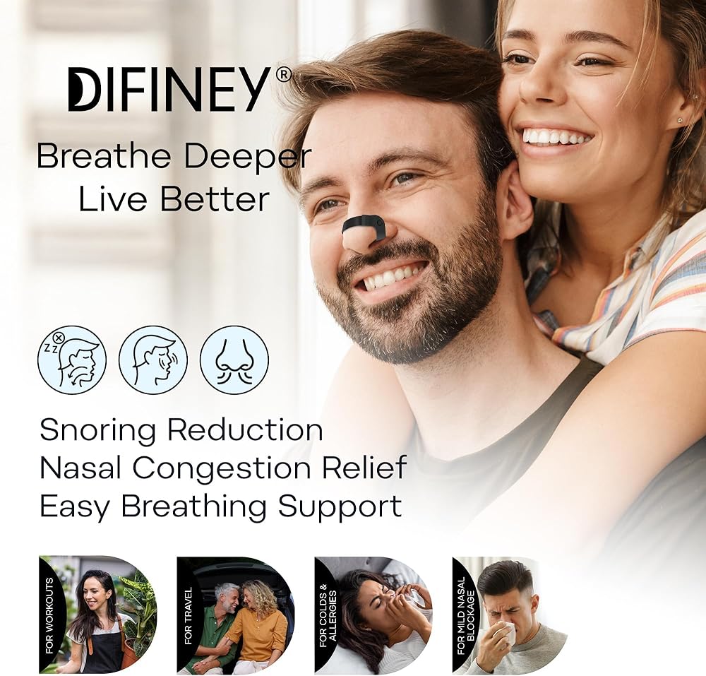 Snoring Support Without Sticky Pads or Skin Pulling No adhesives. No irritation. No marks left on your nose. Difiney stays in place comfortably throughout the night and supports smoother airflow that may help reduce snoring caused by nasal congestion.
