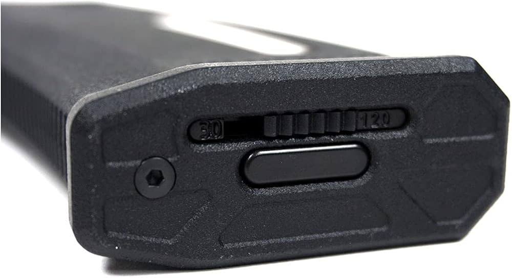 The all-new KWA MS magazine line, available in either cutoff (MS120c) or standard (MS120) 3-packs, lets you customize your AEG loadout like never before! The MS line is made with KWA's ultra-durable fiber polymer, giving you lightweight, rugged, and reliable mags for CQB or MilSim games. The new mock-window, which mimics brass 5.56 rounds, adds some style to your mag pouch, while the dot-matrix ID panel lets you mark your mags with numbers or initials for easy identification. Handling the MS mags is never a problem thanks to unique front and rear grip lines that ensure that you never lose your grip. These MS120c mags also let you change BB capacity from a realistic 30 rounds to 120 with the flick of a switch, which is perfect for LE/Military training scenarios.
