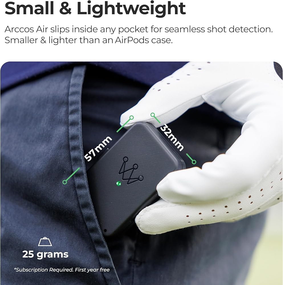 • Automatic Shot Tracking—No Sensors Required: Place the lightweight Air wearable in your pocket and play. Arccos tracks every shot in the background with tour-level accuracy so you can stay focused.