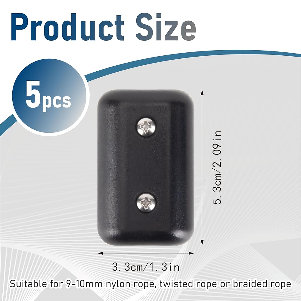Product Size: The rope clamps size is about 5.3x3.3x2.4 cm/2.09x1.3x0.94 inches, suitable for 9-10 mm nylon rope or braided rope.
