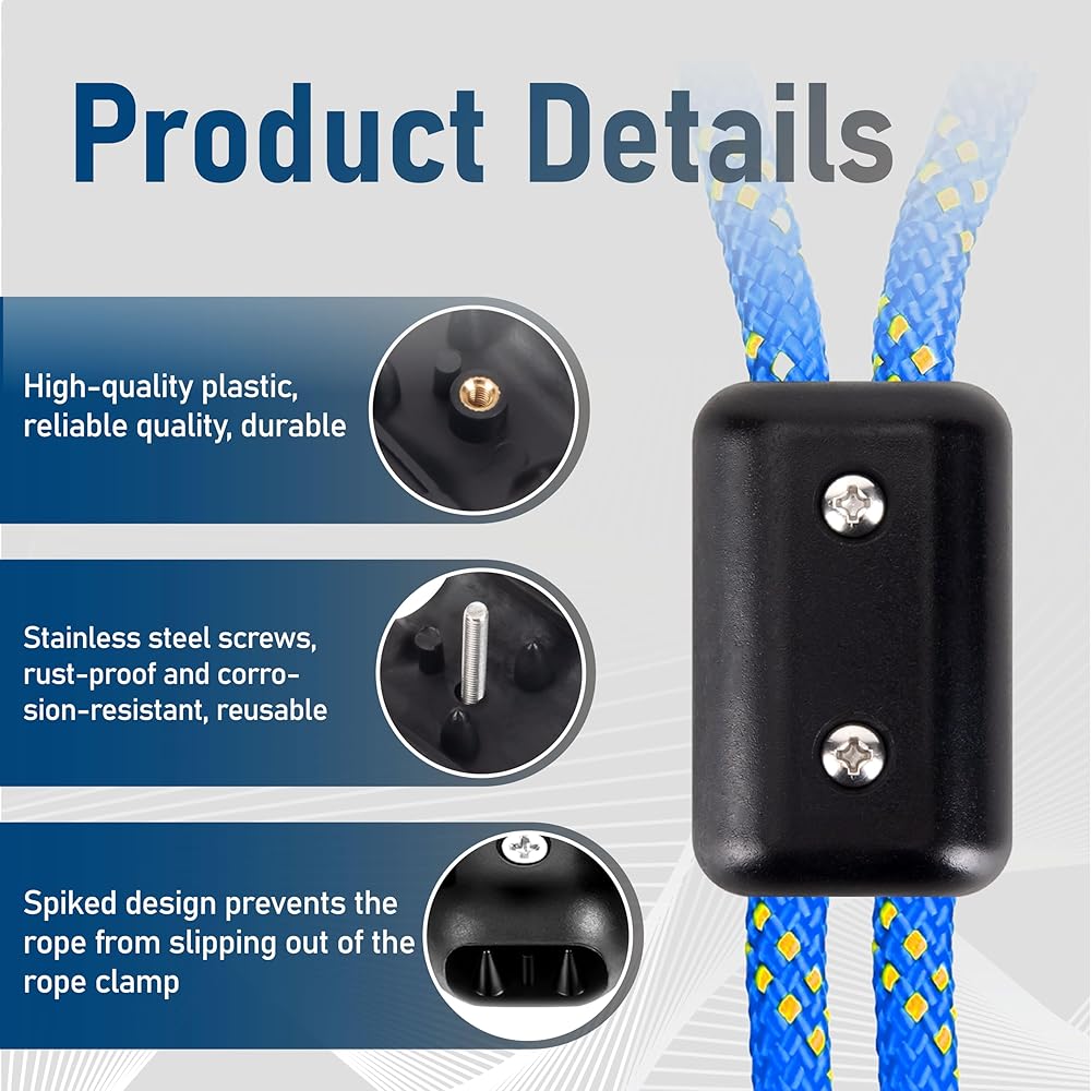 Widely used: These rope clamps are commonly used for coiled ropes, braided ropes, wire ropes or dog ropes, and can also be widely used for indoor or outdoor pet ropes, horse ropes, dock boat ropes, swings or personalized lanyards.