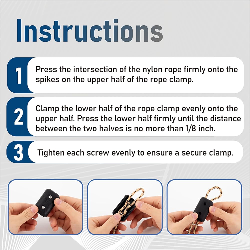 Package Contents: You will receive 5 rope clamps and 10 screws, these 1/2 inch double OT rope clamps are sufficient for your daily use and replacement needs.