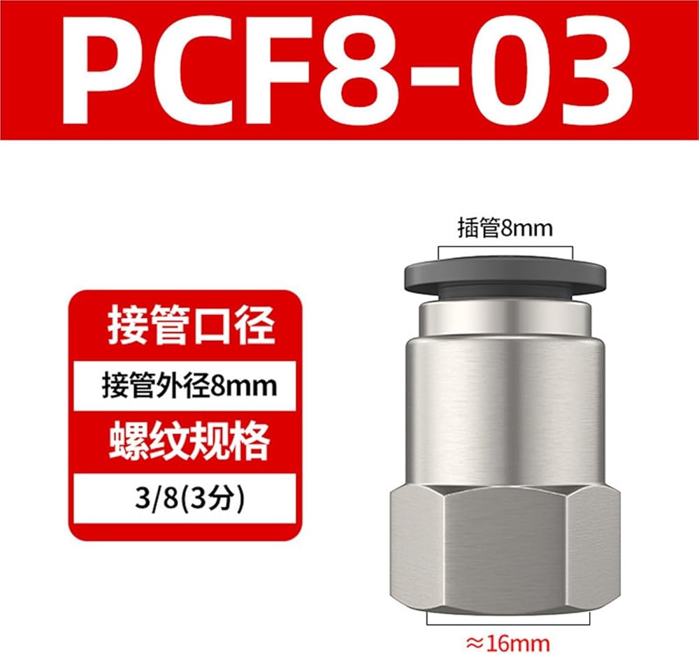 هوائي القصبة الهوائية موصل سريع PCF6-01/8-02/10-03 إدراج الخيط الداخلي مباشرة من خلال الأسود والأبيض 1 قطعة(黑色PCF8-03(高端))