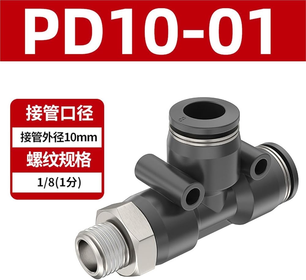 القصبة الهوائية موصل سريع على شكل حرف T الجانب المحملة PD4-01/6-01/8-02/12-04 الملحقات 1 قطعة (黑色PD10-01)