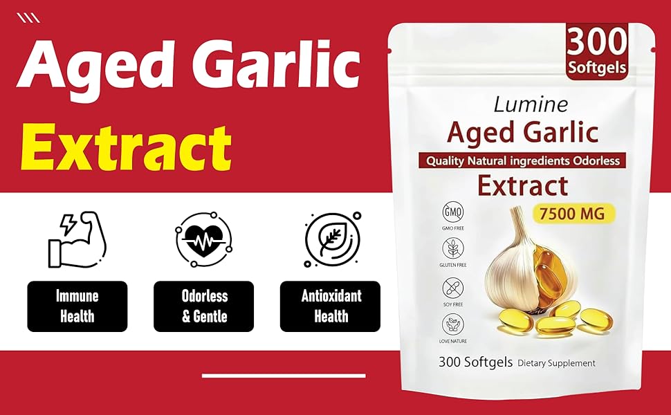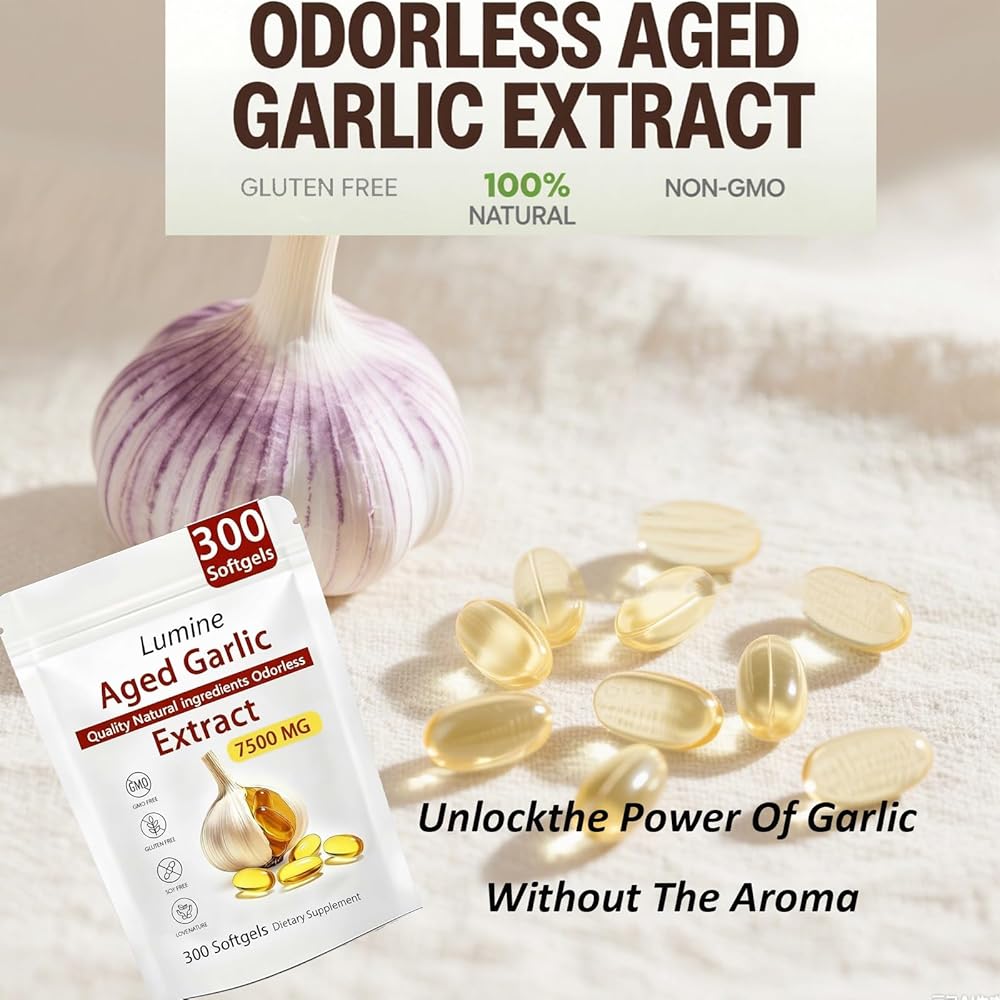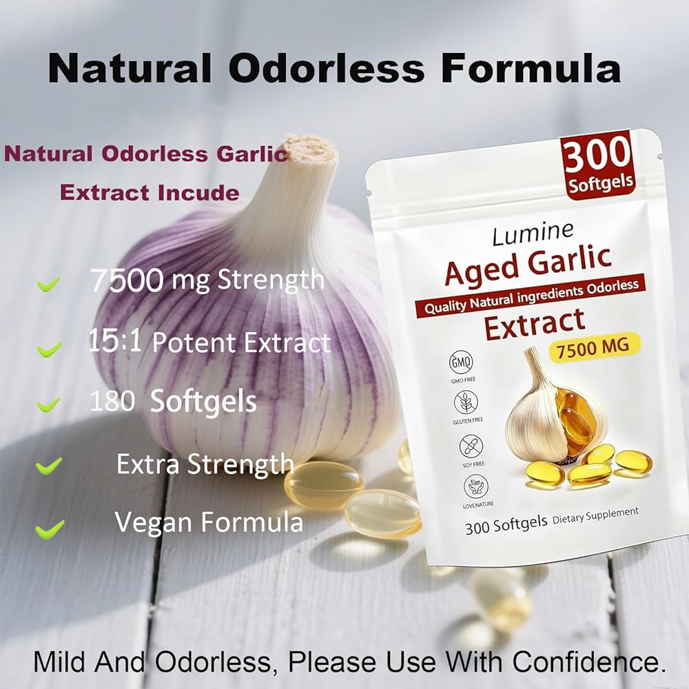 لومين مستخلص الثوم المعمر عديم الرائحة - - Lemeli مستخلص الثوم المعمر 300 كبسولة هلامية | عضوي، غير معدّل وراثيًا، خالي من الغلوتين | يدعم صحة المناعة