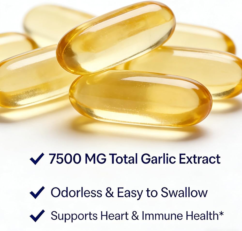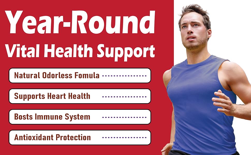 - 100% عديم الرائحة ولطيف: لا يوجد رائحة ثوم أو اضطراب في المعدة. خالي من الغلوتين، وغير معدّل وراثيًا، وخالي من الصويا ومنتجات الألبان والمكسرات.