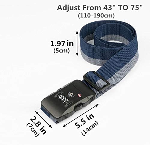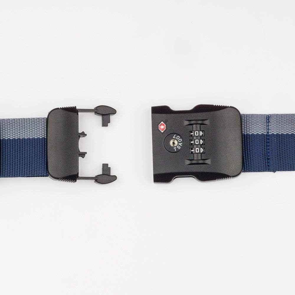 حزام امتعة معتمد من إدارة أمن المواصلات الأمريكية مزود بـ 3 أقراص قفل مركب قابل للتعديل، حزام سفر أزرق ورمادي