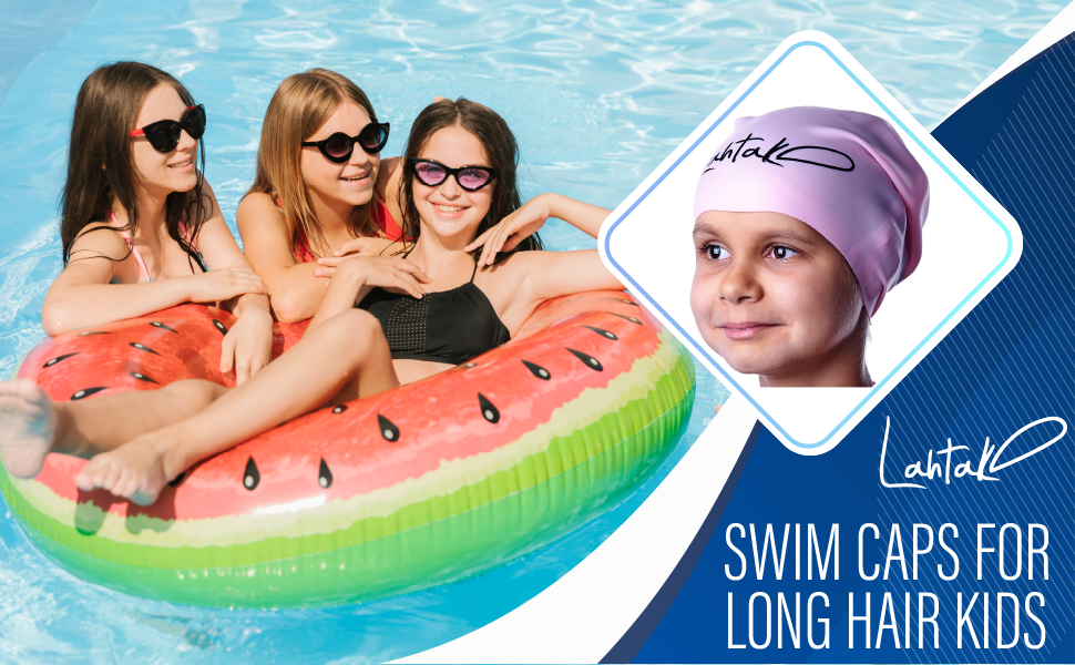 Kids Swim Cap for Long Hair - Comfortable Fit Silicone Swimming Hat for Girls & Boys with Curly Hair, Braids, or Dreadlocks - Durable & Easy to Wear