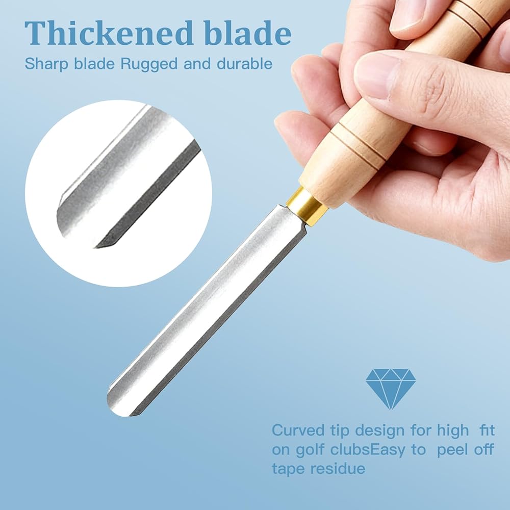 متينة وواقية: شفرة أداة إزالة مقبض الجولف مصنوعة من الفولاذ عالي الكربون، مما يوفر صلابة استثنائية ومقاومة للتآكل. الشفرة مقاس 18 مم تناسب بدقة معظم مقابض نادي الجولف وتظل متينة حتى بعد الاستخدام لفترة طويلة. المشبك المطاطي المتضمن يحمل العمود بشكل آمن دون خدش اللمسة النهائية، مما يضمن المتانة وحماية النادي