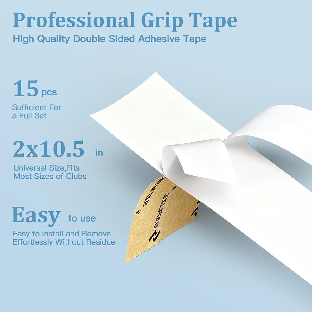 التصاق قوي وسهل التنظيف: يبلغ سمك شريط قبضة الجولف 0.25 مم ويتميز بقوة لاصقة قوية، مما يضمن ملاءمة محكمة بين المقبض والعمود. يتم نزع شريط قبضة نادي الجولف بسهولة، مما يترك الحد الأدنى من البقايا، مما يلغي الحاجة إلى تنظيف المادة اللاصقة القديمة عند إعادة الإمساك بها