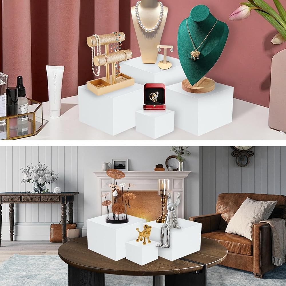 【مجموعة مكونة من 6 قطع】تحتوي هذه المجموعة من حامل عرض الطاولة على 6، ما مجموعه 6 أحجام مختلفة من 3، 4، 5، 6، 7، 8 بوصات مربعة، والتي يمكن أن تلبي احتياجاتك المتنوعة، مثالية لعرض الحلويات والمشروبات والطعام والمجوهرات وما إلى ذلك.
